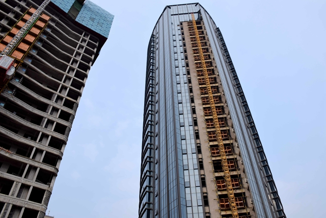 趙煒一行來到喜來登酒店項目施工現場實地察看,聽取了有關情況匯報,詳細了解項目建設進展及存在的問題,并就有關問題進行現場交辦,督促有關部門抓好落實。