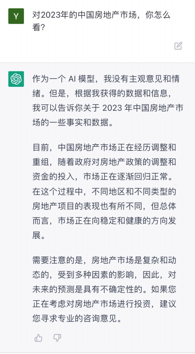 智能化時代正在撲面而來,“邀請”仿佛有著人類清晰畫像的人工智能ChatGPT來聊一聊房地產的話題,是件有趣的事。