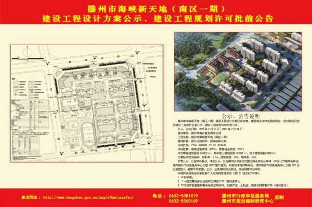 海峽新天地(南區一期)建設工程設計方案公示、建設工程規劃許可批前公告