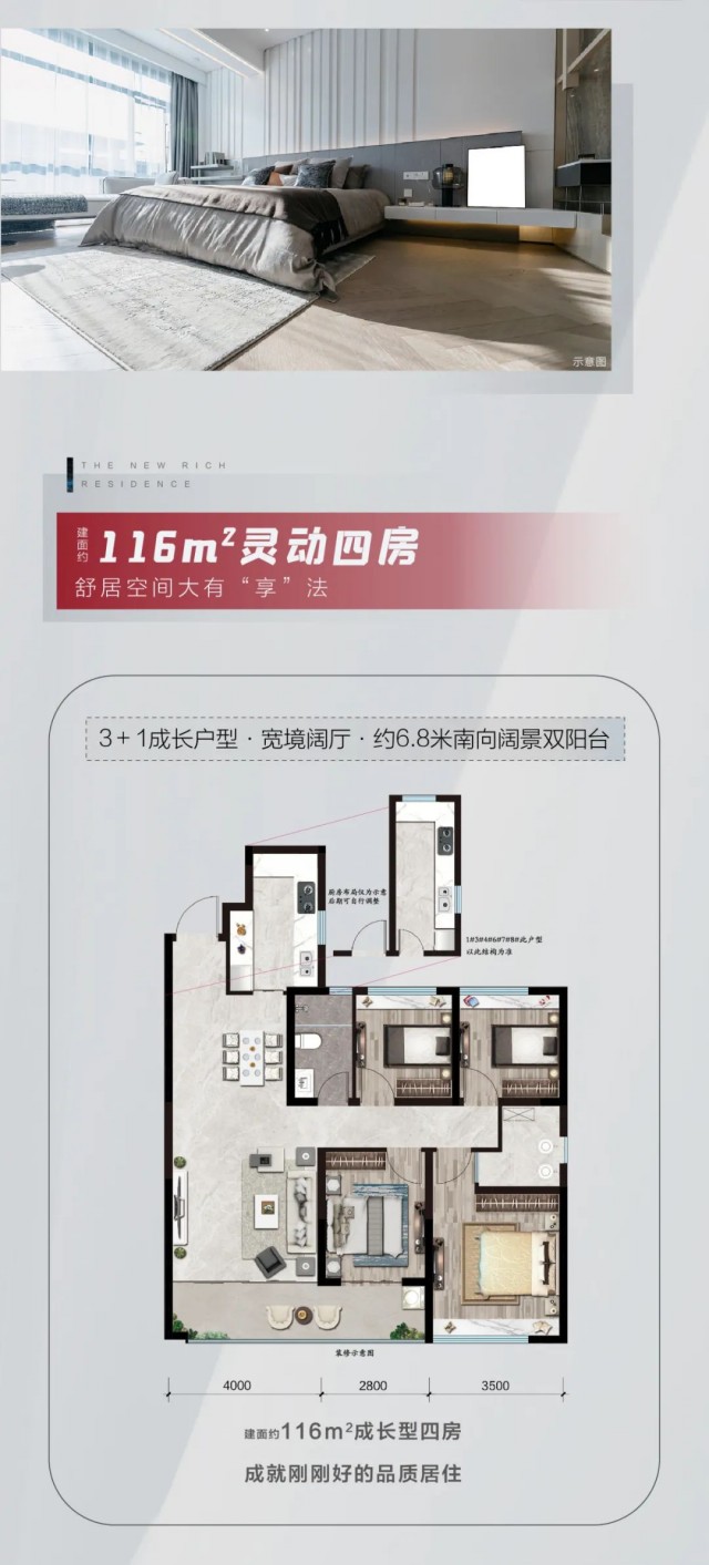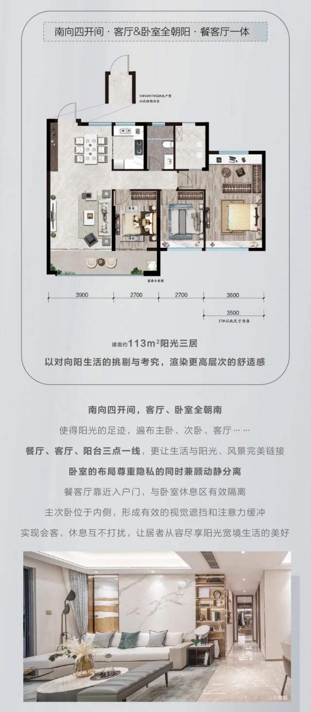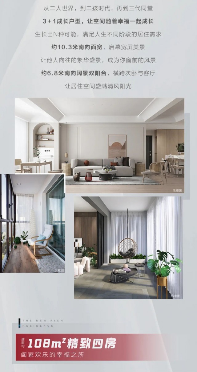 3、本宣傳資料內提到的商品房面積均為建筑面積,特別說明的除外;本宣傳資料所涉及的戶型僅供示意參考,所標尺寸面積、室內裝修設計方案僅供參考,非實際交樓衡量之基準;相同戶型因樓棟、單元或樓層不同,局部結構、面積、尺寸、管線布置等可能存在差異,具體以《商品房買賣合同》為準;