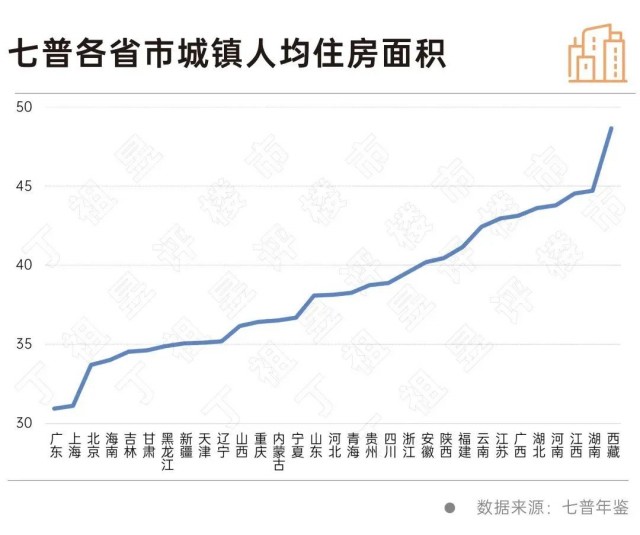 對比各省市城鎮人均住房面積,可以看到各地家庭戶住房的平均水平差異極大。七普統計數據顯示,有33%的家庭人均住房面積已經達到了50平方米以上,超過了歐洲發達國家的平均水平。另一方面,也有15%的城鎮家庭戶人均住房面積低于20平方米,幾乎不到全國平均水平的一半。因此,現階段,我們“不缺房,但缺好房”。