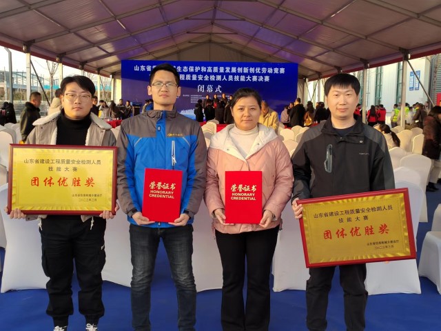 2023年2月27日至3月1日,首屆山東省建設工程質量安全技能大賽決賽在泰安和德州舉行,共有482家檢測機構參加了初賽,通過層層選拔來自16個地市的52支代表隊共計168名選手進入決賽。我市共有7名選手參加五個比賽項目,榮獲二等獎1名,三等獎4名,優秀選手獎2名的優異成績。其中中國國檢測試控股集團山東有限公司、山東科潤建設工程質量檢測有限公司榮獲團隊優勝獎,棗莊市建設工程質量檢測中心有限公司、棗莊高信建筑工程檢測有限公司榮獲優秀組織獎。
