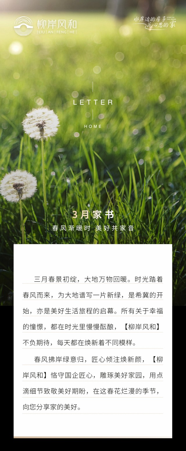 春意彌漫時,萬物生機起。柳岸風和將繼續懷揣著美好的期許與想象,秉承國企匠心精工,鍛造品質美好家。期待未來與您在理想新居相聚。
