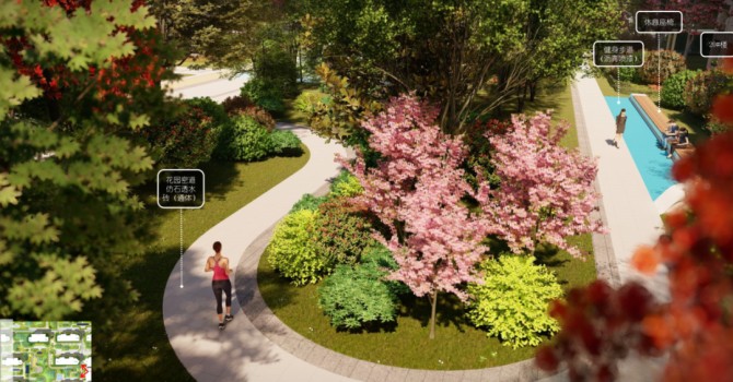 我們利用建筑之間的圍合關系,處處創造功能空間。童玩天地、戶外健身、林蔭漫步、鄰里花園、有氧運動、閱讀花園,每一處主題式空間設計都是未來生活的可能。