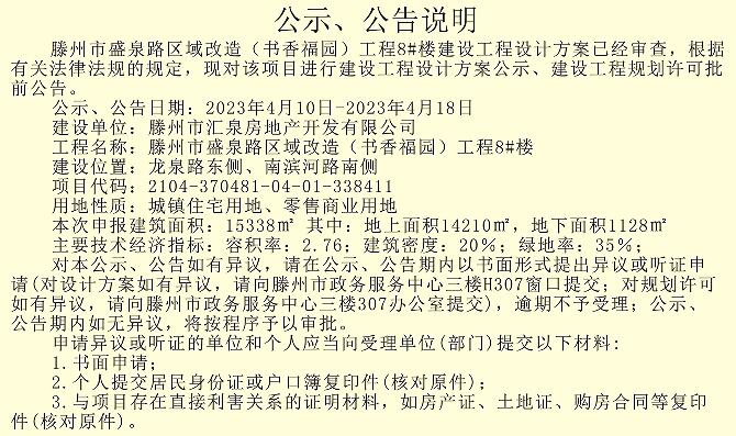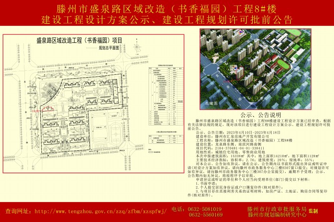 盛泉路區域改造(書香福園)8#樓建設工程設計方案公示、建設工程規劃許可批前公告