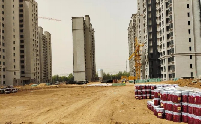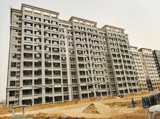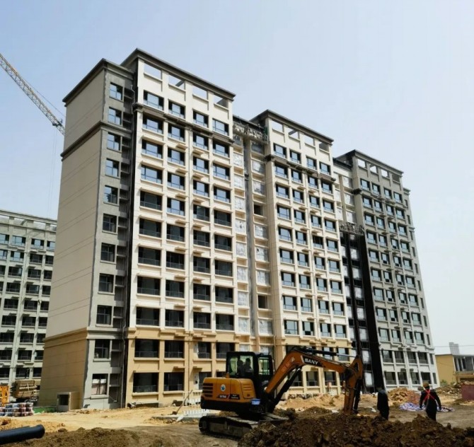 外立面已經進入最后一道工序,外墻涂料施工階段,已開始施工。