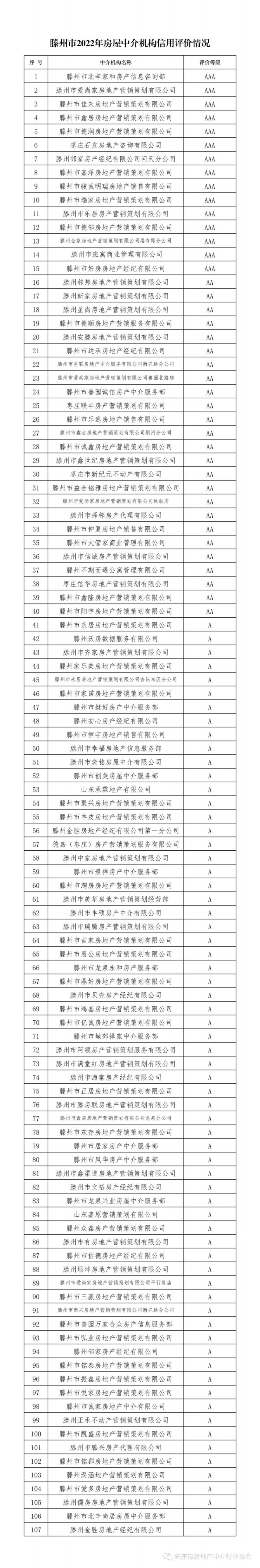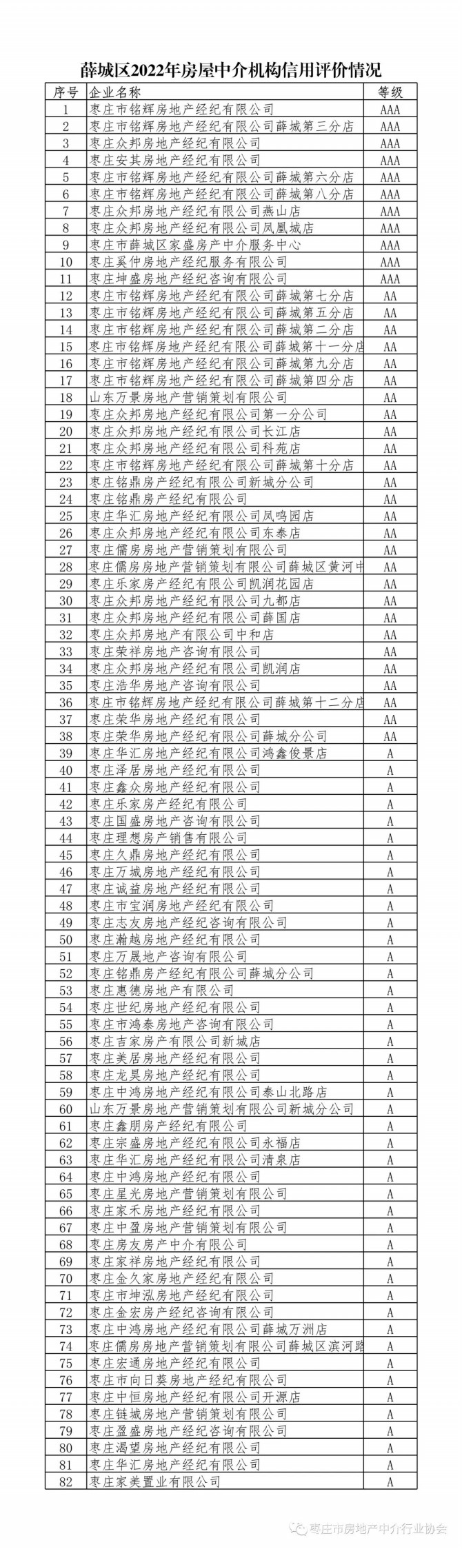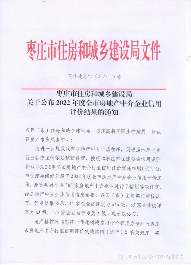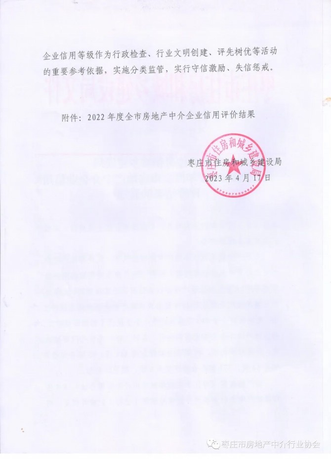 關于公布2022年度全市房地產中介企業信用評價結果的通知