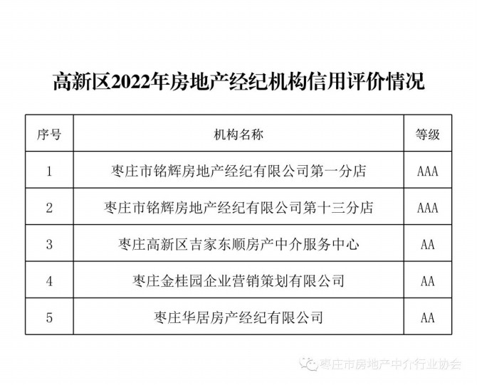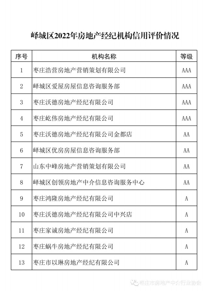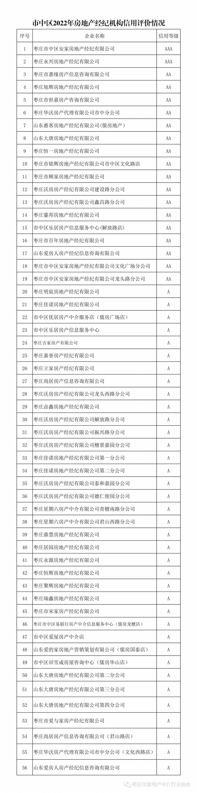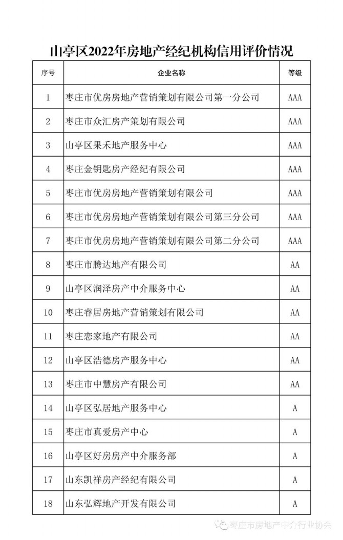 關于公布2022年度全市房地產中介企業信用評價結果的通知