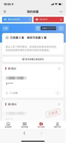 第二第三批次的人員會等待第一批次人員選房,如果意向房源被前面批次人員選中會提示房源已被選中,可以進行刪除收藏其他房源。