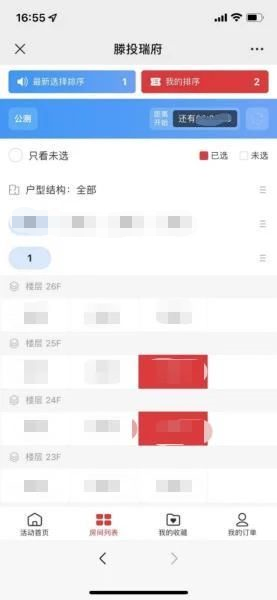 ?。ㄗⅲ核{色框為當前進行中的選房批次,紅色框為不同批次客戶所處的選房批次,正式開盤時間顯示的為第一批選房人員開始時間)