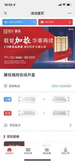 關注“滕投·悅府”公眾號,點擊下方菜單欄“瑞府開盤”,登錄在線選房系統。