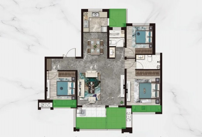 可以說,119平米的這個戶型設計真的是充滿亮點,最后再給您介紹一個加分項。這個戶型的陽臺和普通陽臺有所不同,大多數的陽臺進深是1米6,而我們這個戶型進深達到了2米,實際看起來會感覺特別寬敞舒適。喜歡在陽臺曬太陽的朋友可以在這里充分發揮創意!