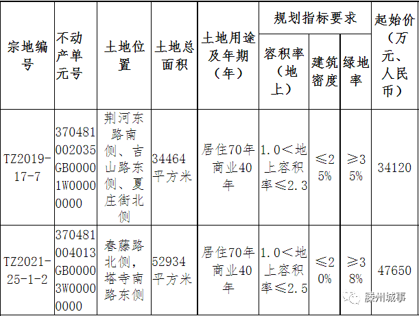 2023年5月15日,經滕州市人民政府批準,滕州市自然資源局決定在棗莊市公共資源交易網以網上掛牌的方式公開出讓2宗國有建設用地使用權,2宗土地的起拍總價8.177億元,具體情況如下:
