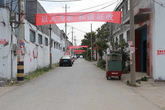 剛進入村居,首先映入眼簾的是懸掛于村居主路的紅色橫幅——“以人為本 和諧征收”“依法征收 陽光補償”等。大量的條幅充溢在村居的大街小巷,而且在居民墻上還有很多手寫標語——“群眾利益至高無上 ”“堅決做好棚改工作”等,顯示著這個村居正在進行著房屋搬遷征收工作。