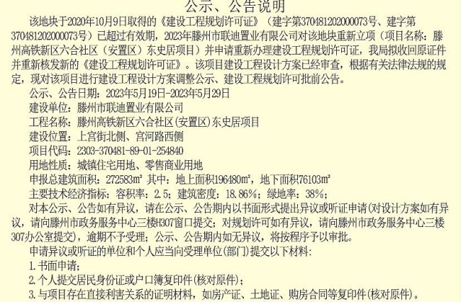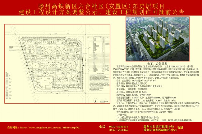 高鐵新區六合社區(安置區)東史居項目建設工程設計方案調整公示、建設工程規劃許可批前公告