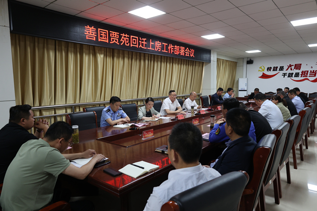 5月25日,善南街道在四樓會議室召開善國賈苑回遷上房工作部署會議。市住房建設事業發展中心副主任龍厚智;善南街道黨工委副書記、辦事處主任魯大鵬,黨工委副書記李娜,黨工委委員、武裝部長、宣傳委員張海濤,二級主任科員李維軍,辦事處副主任張化冰,黨政辦公室副主任李棟及新興置業有限公司董事長蔣安亮,市直有關部門、指揮部、開發公司、社區(居)相關人員參加會議。