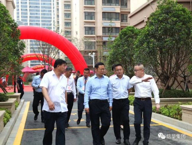 5月29日下午,信華集團黨委書記、董事長徐俊及相關部門負責人到信華城·智園現場調研上房情況。