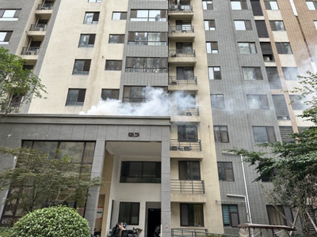 在火災救援演練階段,14號樓1單元3層因違規裝修施工引起火災。應急救援各組發現火情后迅速抵達現場,報警聯絡組、滅火戰斗組、疏散引導組、外圍警戒組、設備保障組、后勤保障組、醫療救護組、通訊聯絡組分工明確,迅速投入搶險活動?;鹎榈玫娇焖倏刂疲瑐麊T得到及時救治,貴重物資得到快速轉移,整個過程緊張有序,實用性強,達到了預期目的。