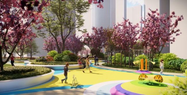綠化率高達35%,聘請大師團隊設計,以五重園林三進禮序,重塑歸家儀式。創新設計手法,建立園林可識別性,營造獨特景觀性格。通過園區道路的合理布局,提高可達性和可視性。并利用豐富的空間布局,打造四季怡人景觀,引入數十種植被,讓一年四季悠享不同花園美景。