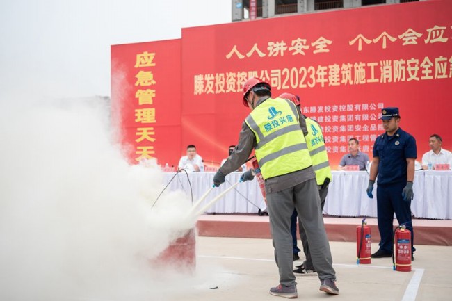 6月17日,滕發投資控股公司2023年建筑施工消防安全應急救援演練活動在滕投集團朱李居棚戶區改造項目現場舉行。 此次活動由山東滕發投資控股有限公司主辦,山東滕建投資集團有限公司承辦,滕投集團安全品控部、工程管理一部、興唐公司協辦,參加活動人數近200人。