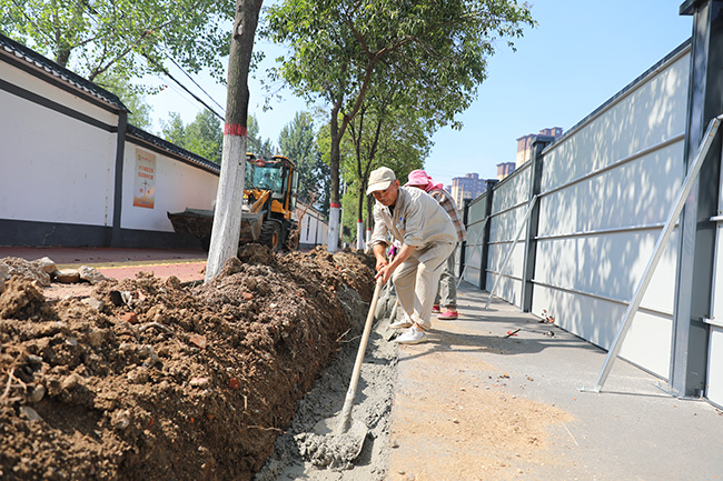 在善國路、文昌路、北辛路、高鐵站前廣場等建設現場,施工人員緊張有序趕搶工期,一幅幅如火如荼的建設場景,冒著酷暑,施工人員熱情不減,工人們各司其職,精細化操作,施工現場秩序井然。