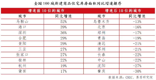 從城市排序來看,仍有部分重點城市庫存同比增速出現走高跡象。報告顯示,包括海口、深圳、合肥和三亞等重點城市庫存同比增速出現增長態勢。從原因看,部分和相關城市重啟開發投資工作有關,如??诤腿齺?。以深圳為代表的部分城市當前新盤供應加大,也帶動了庫存的上升。還有一部分城市,與其市場交易疲軟等因素有關。