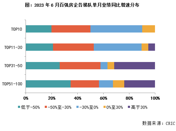 報告顯示,6月僅不到3成的百強房企單月業績同比增長,環比增長的企業在百強房企中也只占到半數。
