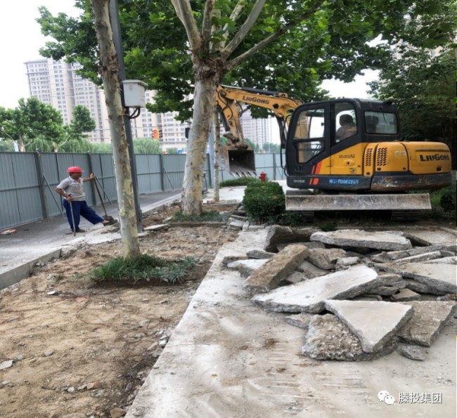 為確保施工質量和安全性,減少對周邊居民和車輛的影響,滕投集團嚴格制定了施工方案。7月3日,大同路提升工程正式開工。在項目施工現場,工人們正在運用小型挖掘機對原有老舊路面進行破除和清理工作,施工過程井然有序。