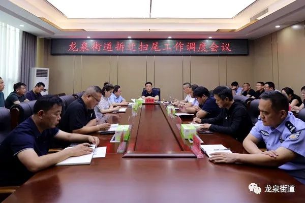 7月10日上午,龍泉街道召開拆遷掃尾工作調度會議。市住房建設事業發展中心副主任龍厚智;街道黨工委書記馬洪杰,黨工委副書記徐伯朝,黨工委委員、宣傳委員王騰,辦事處副主任李維東、任峰峰,三級主任科員朱述禮,應急管理辦公室副主任趙士昊,社會保障服務中心主任梁棟,社會治理綜合服務中心主任倪召喜,相關部門、社區負責人參加會議。