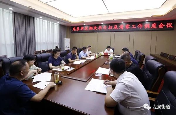 7月27日下午,龍泉街道召開棚改拆遷掃尾清零工作調度會議。街道黨工委書記馬洪杰,街道黨工委副書記、辦事處主任劉寶斌,市住房建設事業發展中心副主任龍厚智,街道黨工委副書記徐伯朝,街道黨工委委員、紀工委書記駱志華,街道黨工委委員、宣傳委員王騰,街道黨工委委員、組織委員杜兆峰,街道辦事處副主任杜紅、劉穎,街道三級主任科員朱述禮,相關部門、片區、村負責人參加會議。