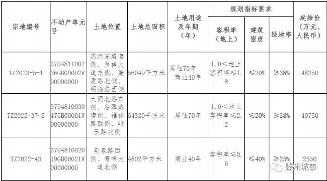 7月28日,經滕州市人民政府批準,滕州市自然資源局決定在棗莊市公共資源交易網以網上掛牌的方式公開出讓3宗國有建設用地使用權,3宗土地的起始價合計89550萬元,具體情況如下: