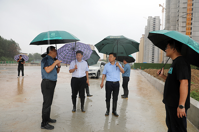 7月29日,市住建局黨組書記、局長馬培安,市住建局黨組成員、副局長李宏江檢查重點城建項目防汛工作。