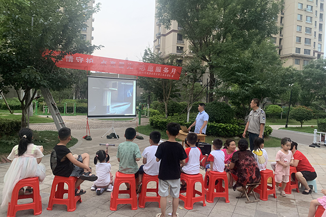 8月1日,組織祥泰物業工作人員、學生在大同印象小區開展預防溺水·提高自救觀影活動。