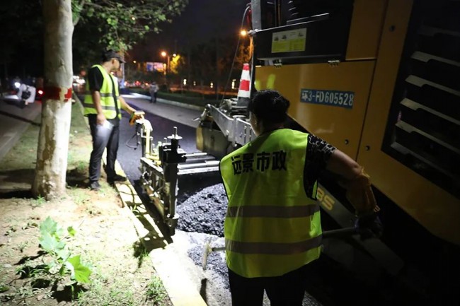 8月3日晚9點15分,在龍泉北路道路提升瀝青鋪設現場,燈火通明,信華集團遠景市政項目建設者奮戰在施工一線,挑燈夜戰,爭分奪秒搶工期,加班加點趕進度,全力保障項目建設快速推進,跑出了城市建設加速度。
