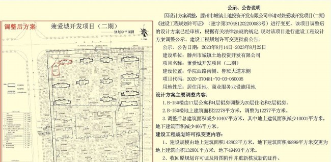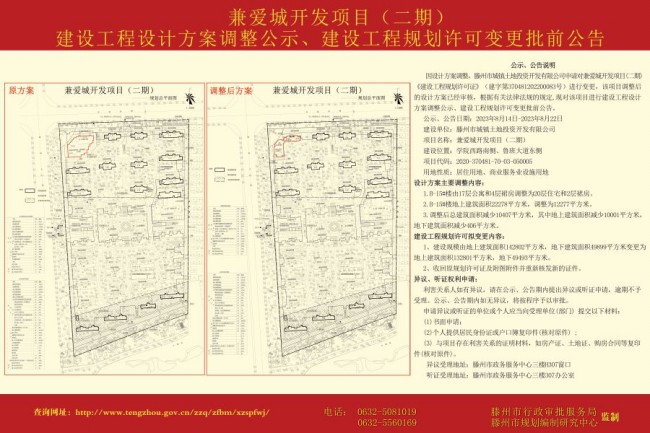 兼愛城開發項目(二期)建設工程設計方案調整公示、建設工程規劃許可變更批前公告