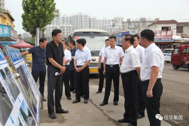 8月13日上午,棗莊市委常委、滕州市委書記王廣部,滕州市委副書記、市長周剛到信華集團調研文昌路二中區域提升工程、龍泉路提升工程建設情況。信華集團黨委書記、董事長傅龍,黨委委員、副總經理李東陪同調研。