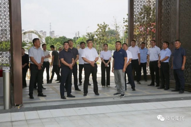 考察團一行先后參觀調研了滕投瑞府、滕投·人和廣場、家風家訓和善文化館、中材鋰膜三期、恒璽書苑、滕投集團黨群中心等項目,分別聽取了現場負責同志對項目情況的介紹,了解了集團項目建設情況。
