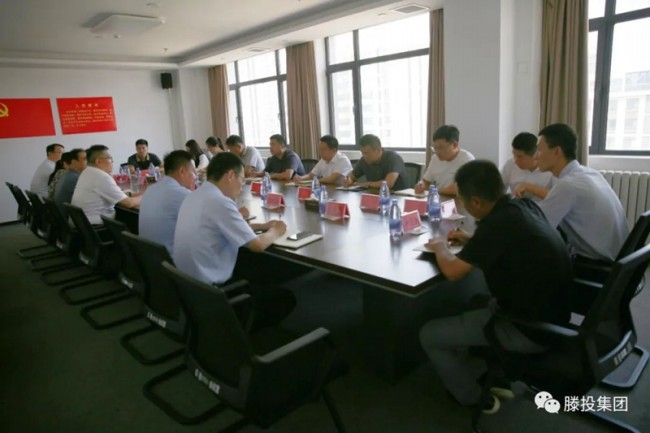 現場調研結束后,考察團一行與集團領導在六樓會議室進行了座談,與會人員就公司制度、市場拓展、財務融資、企業文化、項目團隊搭建、人員考核管理等情況展開了深入交流??疾靾F對滕投集團的綜合實力給予了高度評價,雙方領導均表示,通過開展此次學習交流活動,拓寬了企業經營管理視野,增進了兄弟單位間的了解。下一步,雙方將繼續創造學習條件,加強溝通交流,實現互補雙贏、共同發展。