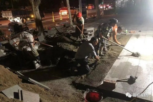 8月18日晚9點,滕投集團大同路提升工程建設現場燈火通明,工作人員奮戰在施工一線,爭分奪秒搶工期、加班加點趕進度,全力保障項目建設快速推進,跑出城市建設加速度。
