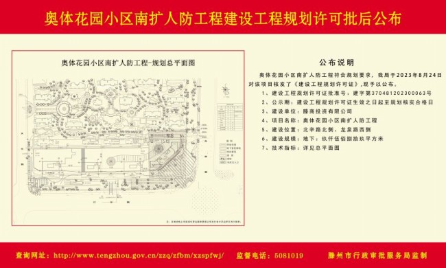 奧體花園小區南擴人防工程建設工程規劃許可批后公布