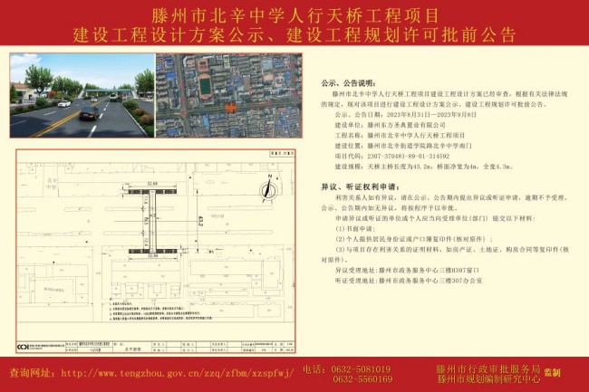 北辛中學人行天橋工程項目建設工程設計方案公示、建設工程規劃許可批前公告