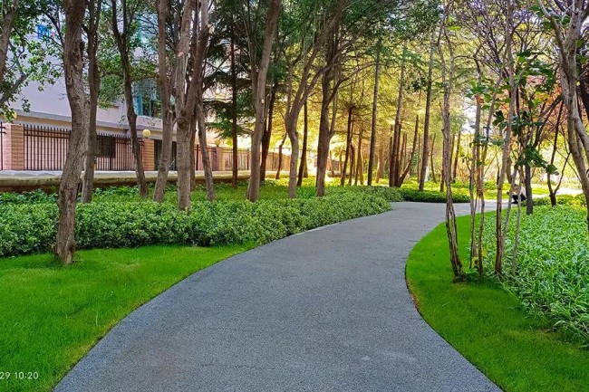 在龍泉路(龍泉大橋至解放路路段)七彩陽光城小區附近,看到路旁的人行道園路煥然一新,新鋪設的透水混凝土路面干凈整潔,兩側綠化帶景觀錯落有致,蜿蜒曲折的林間小道優美如畫,漫步其中,猶如徜徉在天然的森林氧吧,不禁讓人心情舒暢,幸福感滿滿。