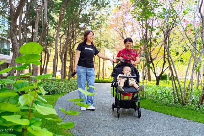 “現在這個人行道修好后真是太舒適了,不僅美化了周邊的環境,而且也讓我們有個遛彎的好去處,帶孩子在這玩耍非常方便?!痹邶埲菲卟赎柟獬切^附近的人行道園路上游玩的市民孫女士高興地說。