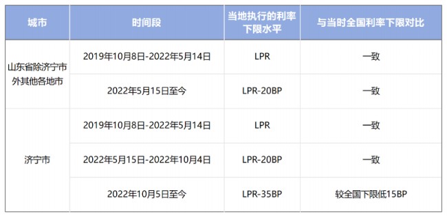 山東省各地市首套住房商業性個人住房貸款利率政策下限數據表