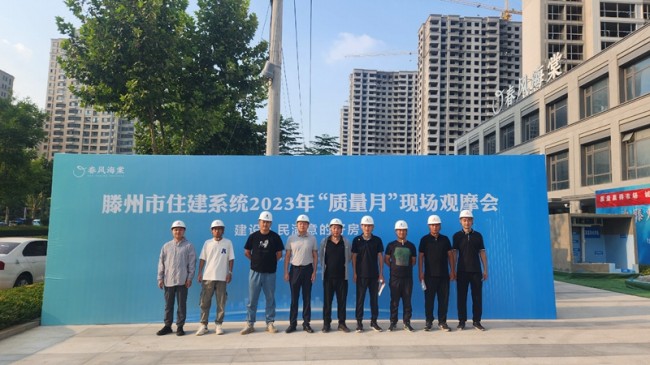 9月8日,滕投集團工程管理三部與悅府二期項目總包單位、監理單位共同參加滕州市住建系統2023年“質量月”現場觀摩會。與會人員參觀了春風海棠項目會所中心及A區16#樓工程樣板間,聽取了項目管理及銷售人員對項目情況的介紹。