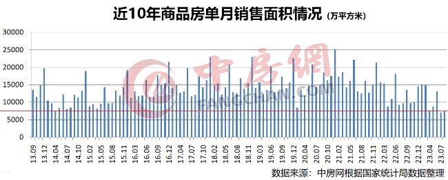 從單月銷售情況來看,根據國家統計局數據拆分后測算,8月份商品房銷售面積為7386萬平方米,環比上漲4.80%,同比下降23.95%。商品房銷售額7708億元,環比上漲4.76%,同比下降23.74%。值得一提的是,盡管8月份的商品房銷售面積數據出現好轉跡象,但仍處于近十年低位,市場弱勢格局不改。