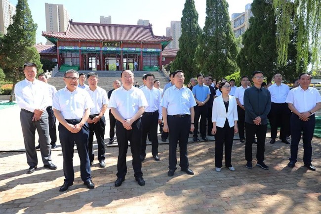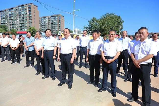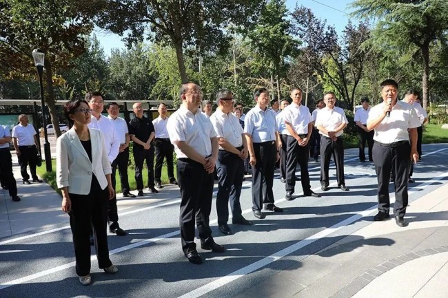 9月22日,市人大常委會組織常委會全體組成人員、部分人大代表視察全市深化城市品質提升工作。市人大常委會主任朱晏辰, 市人大常委會副主任馬冀、孫劍、孔凡華,市人大常委會黨組成員龍琳洲, 市人大常委會黨組成員、辦公室主任、人代室主任賈福軍參加視察, 副市長樊曉陽,市住建局黨組書記、局長馬培安,市住建局黨組成員、副局長李宏江陪同視察。