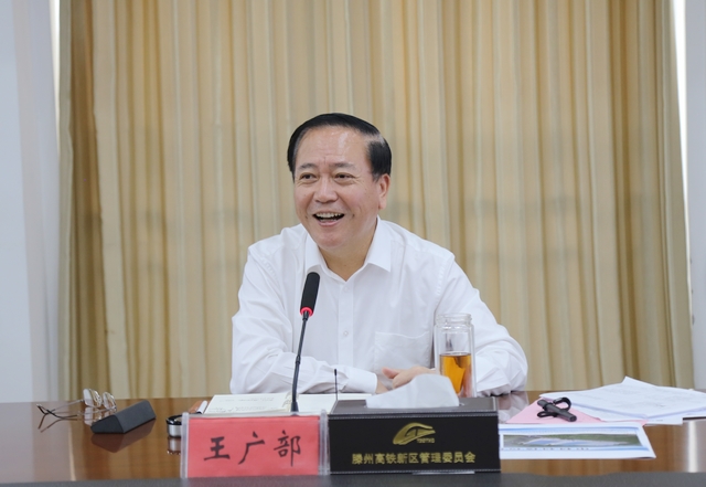 在隨后召開的座談會上,王廣部聽取了高鐵新區規劃和重點項目建設情況,并就下步工作提出要求。要高標準抓好規劃建設,依托原有規劃設計成果,按照“以產興城、先產后城、產城融合”的理念,進一步提升臨墨子湖片區、核心商務區、新能源產業園的規劃建設標準,切實把高鐵新區打造成為“中華善城新地標、產城融合新高地”。