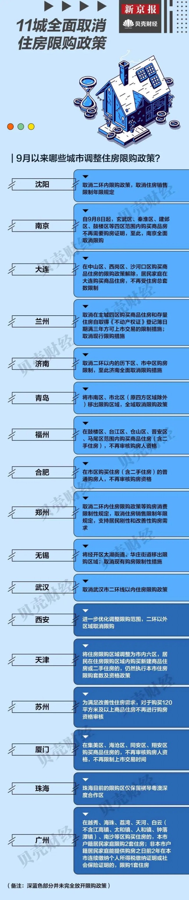 9月以來11城全面取消住房限購政策 廣州打響一線城市松綁第一槍