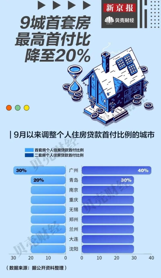 除了限購松綁,一波刺激樓市政策落地。8月31日,央行降低首套房、二套房首付比下限后,多個城市跟進執行。南京、重慶、無錫等二線城市均將首套房首付比例下限降至20%,二套房首付比例下限降至30%。
